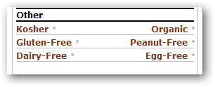 If you're looking for ways to view organic, gluten free, dairy free or kosher, please skip this section and jump to the next section below.